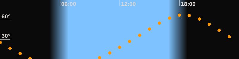 | Höchster Stand (Kulmination) | 18:24 Uhr (h = 67,6°) |