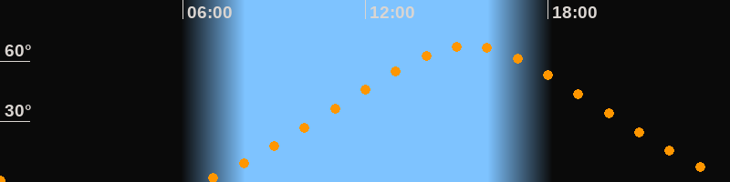 | Höchster Stand (Kulmination) | 15:23 Uhr (h = 67,6°) |