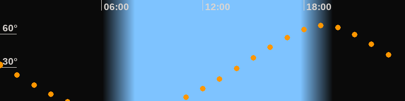 | Höchster Stand (Kulmination) | 19:09 Uhr (h = 67,6°) |