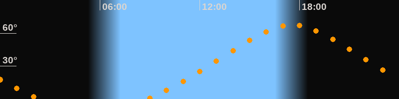 | Höchster Stand (Kulmination) | 17:33 Uhr (h = 67,6°) |