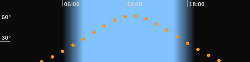 | Höchster Stand (Kulmination) | 12:39 Uhr (h = 67,6°) |