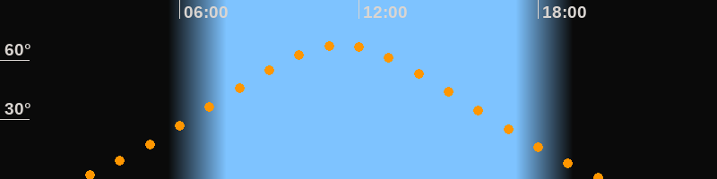 | Höchster Stand (Kulmination) | 11:24 Uhr (h = 67,6°) |