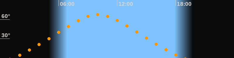 | Höchster Stand (Kulmination) | 10:01 Uhr (h = 67,6°) |