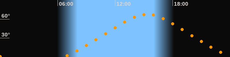 | Höchster Stand (Kulmination) | 15:21 Uhr (h = 67,6°) |