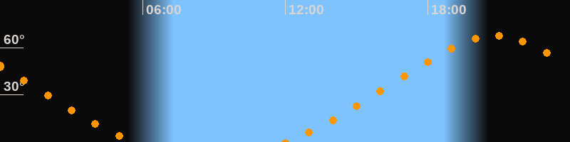 | Aufgang | 12:00 Uhr im Nordosten (αAz = 40,5°) |