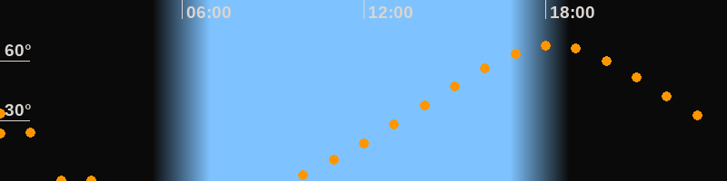 | Höchster Stand (Kulmination) | 18:15 Uhr (h = 67,6°) |