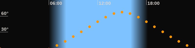 | Höchster Stand (Kulmination) | 14:59 Uhr (h = 67,6°) |