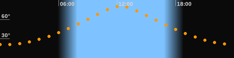 | Höchster Stand (Kulmination) | 12:23 Uhr (h = 80,6°) |