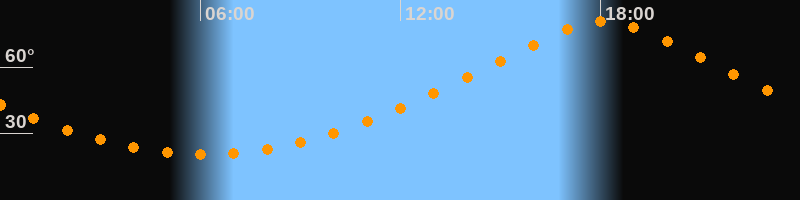 | Höchster Stand (Kulmination) | 18:06 Uhr (h = 80,6°) |