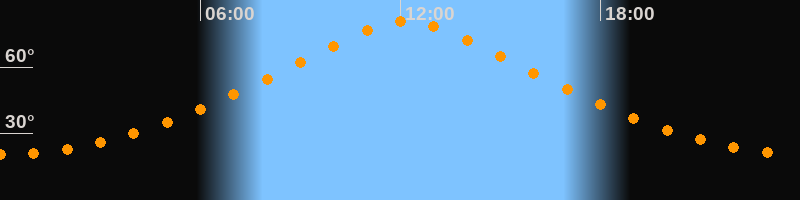| Höchster Stand (Kulmination) | 12:10 Uhr (h = 80,6°) |