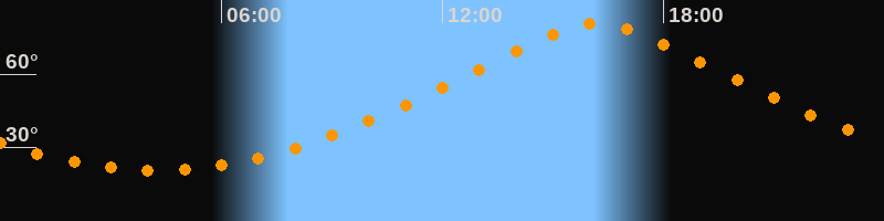 | Höchster Stand (Kulmination) | 16:12 Uhr (h = 80,6°) |