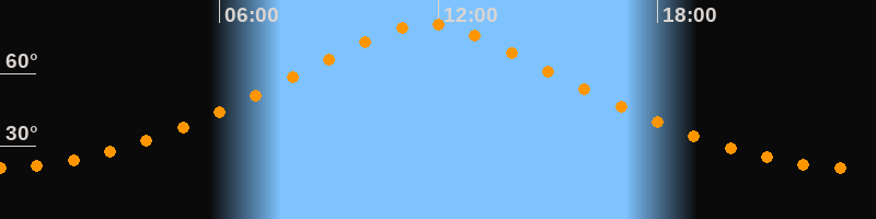 | Höchster Stand (Kulmination) | 11:40 Uhr (h = 80,6°) |