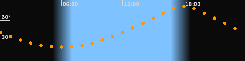 | Höchster Stand (Kulmination) | 17:59 Uhr (h = 80,6°) |