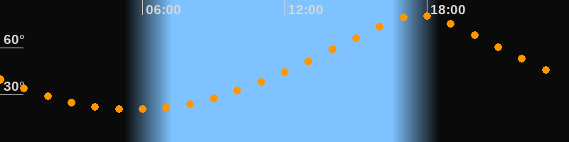 | Höchster Stand (Kulmination) | 17:36 Uhr (h = 80,6°) |