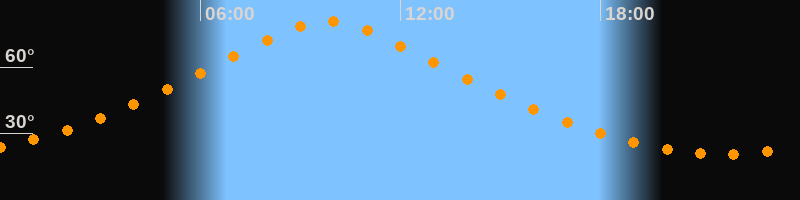 | Höchster Stand (Kulmination) | 09:49 Uhr (h = 80,6°) |