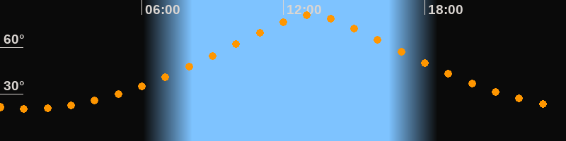 | Höchster Stand (Kulmination) | 13:11 Uhr (h = 80,6°) |