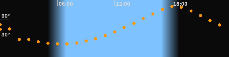 | Höchster Stand (Kulmination) | 18:18 Uhr (h = 80,6°) |