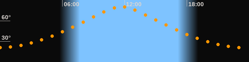 | Höchster Stand (Kulmination) | 11:42 Uhr (h = 80,6°) |
