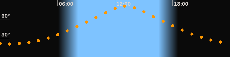 | Höchster Stand (Kulmination) | 13:06 Uhr (h = 80,6°) |