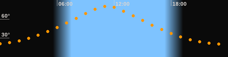 | Höchster Stand (Kulmination) | 11:15 Uhr (h = 80,6°) |