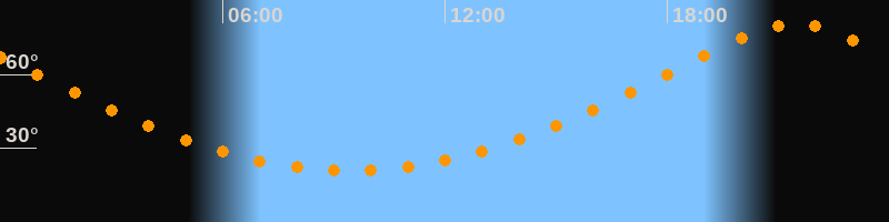 | Höchster Stand (Kulmination) | 21:27 Uhr (h = 80,6°) |