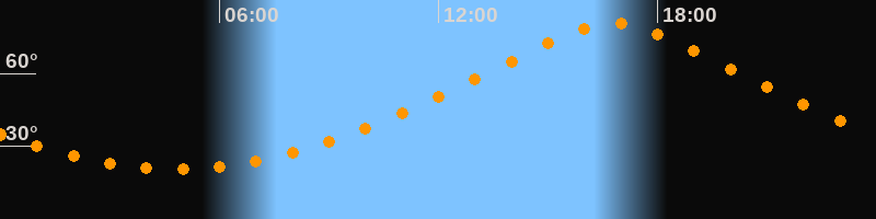 | Höchster Stand (Kulmination) | 16:47 Uhr (h = 80,6°) |