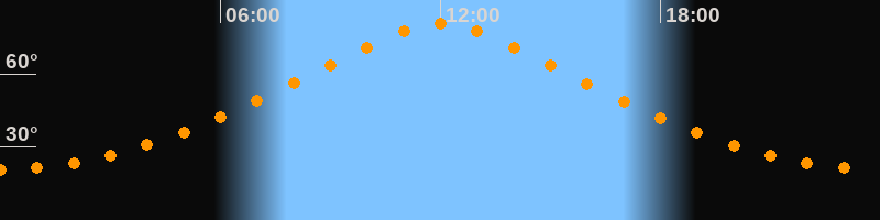 | Höchster Stand (Kulmination) | 11:59 Uhr (h = 80,6°) |