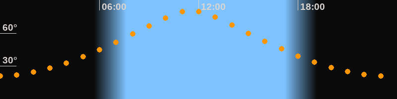 | Höchster Stand (Kulmination) | 11:33 Uhr (h = 80,6°) |