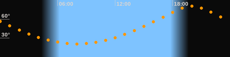 | Höchster Stand (Kulmination) | 20:01 Uhr (h = 80,6°) |