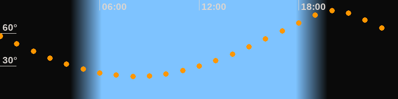 | Höchster Stand (Kulmination) | 20:10 Uhr (h = 80,6°) |