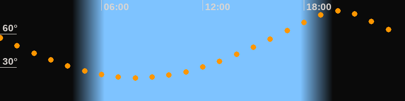 Höchster Stand (Kulmination)20:04 Uhr (h = 80,6°)