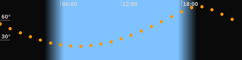 | Höchster Stand (Kulmination) | 19:44 Uhr (h = 80,6°) |