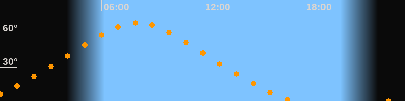 Höchster Stand (Kulmination)08:07 Uhr (h = 70°)