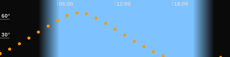 Höchster Stand (Kulmination)08:13 Uhr (h = 70°)