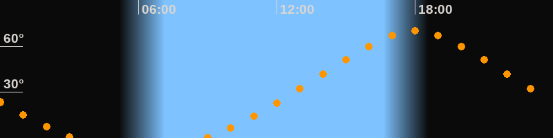 Höchster Stand (Kulmination)18:00 Uhr (h = 70°)