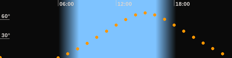Höchster Stand (Kulmination)15:00 Uhr (h = 70°)