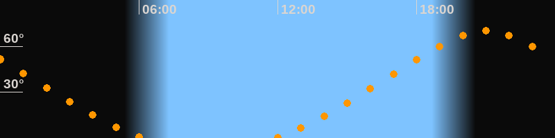 Höchster Stand (Kulmination)21:00 Uhr (h = 70°)