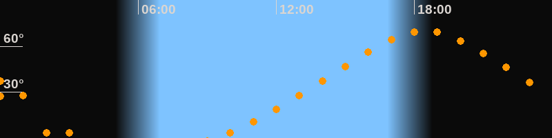 Höchster Stand (Kulmination)18:27 Uhr (h = 70°)