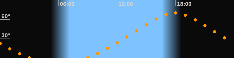 Höchster Stand (Kulmination)17:56 Uhr (h = 70°)