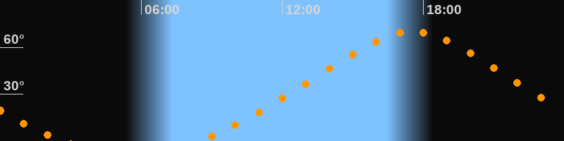 Höchster Stand (Kulmination)17:32 Uhr (h = 70°)