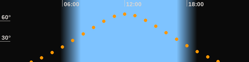 Höchster Stand (Kulmination)12:06 Uhr (h = 70°)