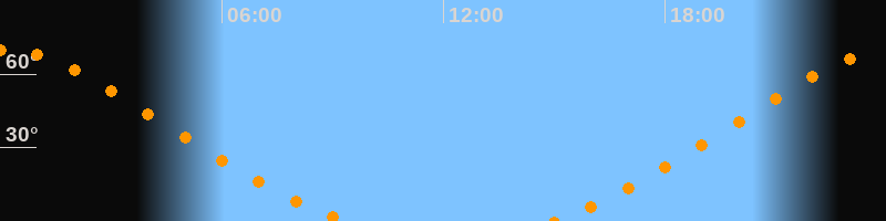 Höchster Stand (Kulmination)00:07 Uhr (h = 70°)