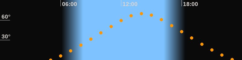Höchster Stand (Kulmination)14:04 Uhr (h = 70°)
