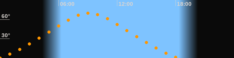 Höchster Stand (Kulmination)09:07 Uhr (h = 70°)