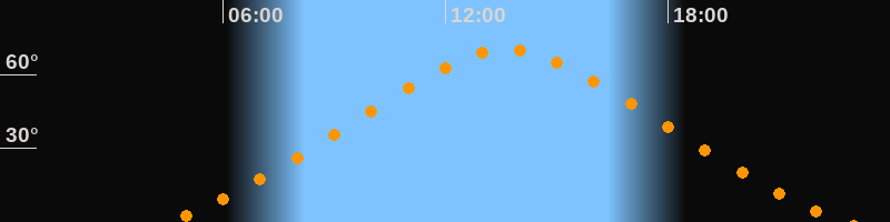 Höchster Stand (Kulmination)13:39 Uhr (h = 70°)