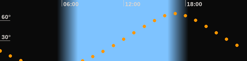 Höchster Stand (Kulmination)17:00 Uhr (h = 70°)