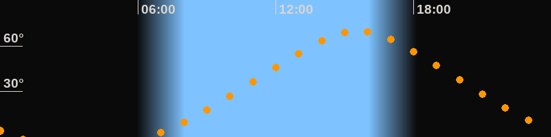 Höchster Stand (Kulmination)15:34 Uhr (h = 70°)