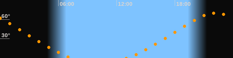 Höchster Stand (Kulmination)22:11 Uhr (h = 70°)