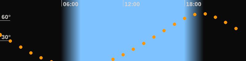 Höchster Stand (Kulmination)19:38 Uhr (h = 70°)