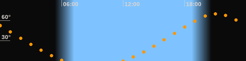 Höchster Stand (Kulmination)21:06 Uhr (h = 70°)